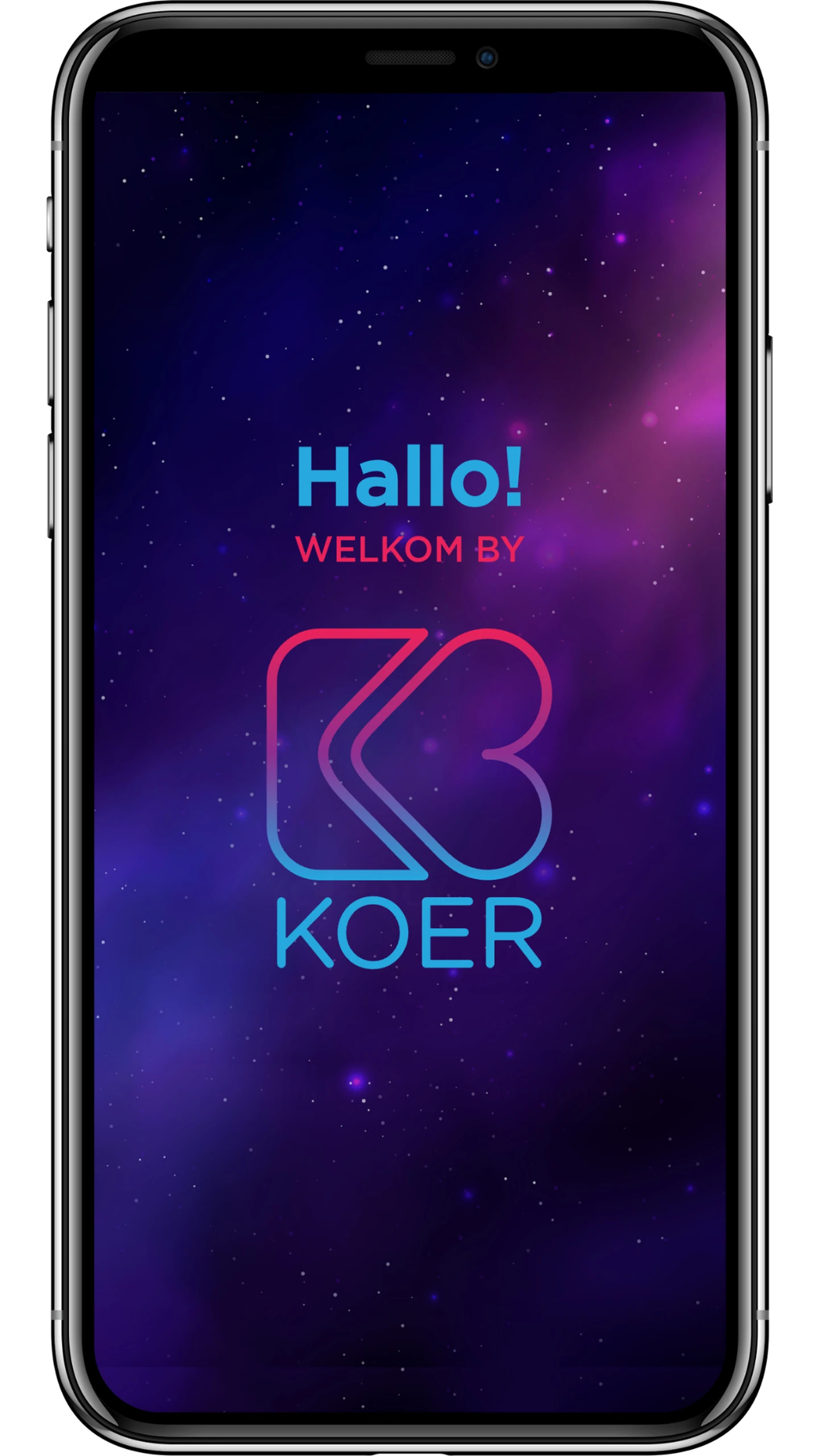 Laai die KOER-app gratis af op Apple App Store, Google Play of Huawei AppGallery.